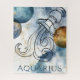 Aquarius der Wasserträger ist das 11. astrologische Schild im Zodiac und wird hier mit einem handgezeichneten Wasserkrug in Schwarz dargestellt, mit blauen und goldenen Planeten auf einem traumhaft blauen Hintergrund mit goldenen Sternen und Blume. Dies ist ein einzigartiges Geschenk für einen Astrologen-Enthusiast oder jemand geboren unter dem Air-Schild von Aquarius - 20. Januar bis 18. Februar.