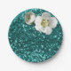 Aquatic Emerald Floral White Jasmine Glitzer Pappteller