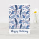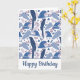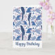 Ara Parrot Blue Tropical Leave Muster Geburtstagskarte. Ara Muster mit tropischen Blättern und Blumen in Blau und Rosa. Fügen Sie Ihre Nachricht hinzu oder löschen Sie sie.