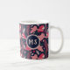 Ara Parrot Rosa Zeichnend tropische Leaf Muster Monogramm Tasse. Ara-Muster auf dunkelblauem Hintergrund mit tropischen Blätter in Grün, Rot und Beige. Digitale, handgezeichnet Abbildung. Fügen Sie Ihr Monogramm hinzu.