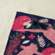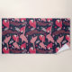 Ara Parrot Rosa Zeichnend tropisches Verlass Pattern Beach Handtuch. Ara-Muster auf dunkelblauem Hintergrund mit tropischen Blätter in Grün, Rot und Beige. Ideal für Papageienliebhaber und Arenbesitzer.