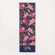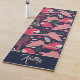 Ara Parrot tropisches Muster Zeichnend Monogramm Name Yoga Mat. Ara-Muster auf dunkelblauem Hintergrund mit tropischen Blätter in Grün, Rot und Beige mit einem Namen in rosa Schrift. Ideal für Papageienliebhaber und Papageienbesitzer. Fügen Sie Ihren Namen oder Ihre Monogramm hinzu.