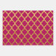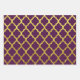 Marokkanischer arabesque Vierblatt-Druck in Imitaten Gold auf drei verschiedenen Farben. Farbtöne aus goldgelbem Gelb zur Simulation von Farbe, Textur und Glanz aus metallischem Hammergold oder Goldblatt. Lila, blau und dunkelrosa.