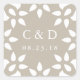Siegel Sie Ihre Hochzeitseinladung, Favoriten und mehr mit unseren eleganten marokkanischen inspirierten Aufklebern in cool Champagner beige und weiß. Das abgerundete quadratische Design besticht durch Ihre Initialen und das Hochzeitsdatum, umgeben von einem geometrischen Rahmen in Weiß auf einem sandigen, bräunlichen Hintergrund. Koordiniert mit unserer Arabesque Hochzeitseinladungskollektion in Champagne.