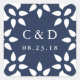 Siegel Sie Ihre Hochzeitseinladung Kuverts, Favoriten und mehr mit unseren eleganten marokkanischen inspirierten Aufkleber in Marine und Weiß. Das abgerundete quadratische Design zeichnet sich durch Ihre Initialen und das Hochzeitdatum aus, umgeben von einem geometrischen Rahmen in weiß auf einem klassisch marineblau-blauen Hintergrund. Koordiniert mit unserer Arabesque Hochzeitseinladungskollektion in Marine.