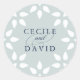Siegel Sie Ihre Hochzeitseinladung Kuverts, Favoriten und mehr mit unseren eleganten marokkanischen inspirierten Aufklebern in weicher Minze und Marine. Das runde Design zeigt die Namen, die mit einem dekorativen Skript verbunden sind und von einem geometrischen Rahmen in Weiß umgeben sind, auf einem hellblau-grünen Hintergrund. Koordiniert mit unserer Arabesque Hochzeitseinladungskollektion in Mist.