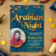 Treten Sie ein in eine Welt der Mystik und lassen Sie sich von dieser arabischen Nachteinladung verzaubern. Diese Einladung wurde durch die Verwendung faszinierender Hintergrundfarben mit vergoldeten und diamantenreichen Dekorationen besonders hervorgehoben, um die Dynamik und den Reiz eines arabischen Party zu erfassen.