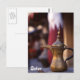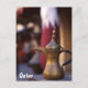 Eine Kaffeekanne vor einer katarischen Flagge in Doha's beliebtem Souq Waqif. Eine Kaffeekanne symbolisiert den Empfang in der gesamten arabischen Welt.