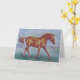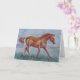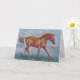 Aquarellmalerei eines arabischen Kastanienpferdes, das über das Gras trottiert. Die Karte ist leer für Ihre eigene Nachricht oder Sie können eine Nachricht über die Funktion Text hinzufügen hinzufügen hinzufügen hinzufügen.