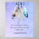 Ein inspirierendes motivierend arapaho indianisches Stamm / gebürtiges amerikanisches Sprichwort, das sagt: Wenn wir uns oft fragen, wird das Geschenk des Wissens kommen. Das Design ist mit einem Aquarellbild von vier zarten Federn geschaffen, die an der oberen Grenze zusammenhängen. Der Hintergrund ist eine lila blaue Aquarelltextur.