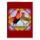 Hühner sind hübsche Vögel, die sich gut für viele Kunststile, einschließlich des Jugendstils, eignen. Dieser Hahn und Henne sind stilvoll in einem Blumengarten-Hintergrund.