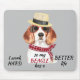 Hier ist das perfekte Mauspad für den Beagle-Besitzer! In der Mitte befindet sich ein Portrait eines Beagle, der einen Hut und eine rote Sonnenbrille trägt. Unten steht ein schwarzer und roter Text, der sagt: "Ich arbeite HARD, damit mein BEAGLE ein BESSERES Leben hat". Niedlich!