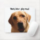 Lustiges gelber Labrador mousepad mit "Arbeit später, Spiel jetzt!"
