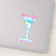 Dieser lustige Kontur-Aufkleber kann mit Ihrem Namen in rosa personalisiert werden, über einem zeichn eines blauen Cocktailglases aus Gin und Tonic mit Eis und Zitrone und den Worten "Arbeit für Gin".