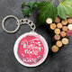 Der Round Button Schlüsselanhänger enthält den lustigen Text "Working Nine to Wine" auf einem Rotweinfleck. Schlüsselanhänger machen unvergessliche Geschenke für Familie und Freunde oder kreieren für sich selbst.