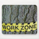 Gelbes Arbeitsbereich-Klebeband auf Baumstamm