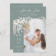 Elegant Save the Date mit maßgeschneidertem gewölbtem Foto, in einem Duett von Salbei grün und Mandeln, um Ihr Hochzeitssortiment zu ergänzen. Das Aquarell-Design mit einem trendigen Bogen, mit Blätter und Blättern in Cremeweiß-Blütenpalomino-Mandeln dekoriert. Elegantes, grünes Design mit Kalligraphie und modernem Styling in einer sanften, natürlichen Farbpalette. Bitte stöbern Sie in meinem Shop - Foliage Duet Kollektion - für passende Artikel.