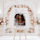 Brauchen Sie ein elegantes und minimalistisches Begrüßungszeichen? Unser Design zeichnet sich durch ein bogenförmiges Foto und moderne Schriftzeichen aus. Personalisieren Sie mit Ihrem eigenen Foto, Namen und Hochzeitsdetails. Fotos von Prostooleh / Freepik.