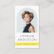 Moderne, minimale, berufliche Visitenkarten oder persönliche Visitenkarten mit Ihrem Foto im Inneren und Bogenrahmen. Anpassbarer Name und Titel/Firmenname auf der Vorderseite. Auf der Rückseite sind anpassbare Vorlagenfelder für Ihre Kontaktinformationen und QR-Code.