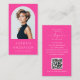 Moderne, minimale, berufliche Visitenkarten oder persönliche Visitenkarten mit Ihrem Foto im Inneren und Bogenrahmen. Anpassbarer Name und Titel/Firmenname auf der Vorderseite. Auf der Rückseite sind anpassbare Vorlagenfelder für Ihr Logo, Kontaktinformationen und QR-Code. Alle Farben sind im Designwerkzeug anpassbar.