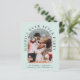 Haushaltsfreundliche Minze Grün Heirat Ankündigung und Empfang Einladung. Die Vorderseite zeigt Ihr Foto in einem Bogen-Rahmen, "Happily Ever After Party" in eleganter Typografie und Ihren Vornamen, Hochzeitstag und Ort. Auf der Rückseite, anpassen Sie Ihre Ankündigung und Einladung, fügen Sie Ihre Namen in ein signaturähnliches Skript und geben Sie Ihre Website-Adresse Hochzeit zu erstellen, einen scannbaren QR-Code für Ihre Gäste zu scannen, online und erhalten zusätzliche Details.
