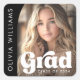 Schwarze Abschluss Aufkleber mit Ihrem Foto in einem Rahmen mit einem Halbbogen mit weißem Text "grad" in einem Retro-Schriftart. vertikal an den links ausgerichtet ist eine Vorlage, die für den Namen des Absolventen eingereicht wurde.