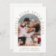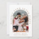 Elegantes weißes Ambiente oder private Hochzeitsankündigung und Einladung zum Empfang. Die Vorderseite zeigt Ihr Foto in einem Gewölberahmen, "Happily Ever After Party" in eleganter Goldtypografie und Ihre Vornamen, Hochzeitstag und Ort. Auf der anderen Seite, personalisieren Sie Ihre Einladung und fügen Sie Ihre Namen in einem signaturähnlichen Gold-Skript.