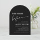 Mit diesem Arch Modern Black Probe Dinner lädt das Hotel zu einem kühlen und eleganten Abend ein. Mit einem eleganten Bogen-Design in zeitlosem Schwarz strahlt diese Einladung Eleganz und Modernität aus und setzt den perfekten Ton für Ihre Ansammlung vor der Hochzeit. Vollständig anpassbar, ist es einfach mit Ihren Veranstaltungsdetails zu personalisieren. Ob auf Zuhause oder professionell gedruckt, dieses auffallende Design sorgt für eine polierte und unvergessliche Touch für Ihren besonderen Abend.