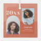Ein Abschluss mit zwei Fotos in einem Bogendesign. Die Einrichtung ist in Orange und Weiß gehalten. Fügen Sie einfach Ihr Foto und Ihre Informationen hinzu, fügen Sie dieses Ornament in Ihren Warenkorb, und halten Sie sich an dieser wunderbaren Leistung, die Sie für viele Jahre genießen können. Arch Orange Foto Abschluss Glasfaser-museum Hochzeitliches Design | ©Melissa Patton - Designer