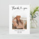 Celebrate your milestone with a Graduation Thank You Card designed to feel as meaningful as the moment itself. The front features the elegant heading Thank You in a fancy modern script, finished with a delicate heart that adds warmth and personality. Centered below, your favorite graduation photo is showcased in a refined arch frame, creating a timeless focal point that feels both contemporary and sentimental. Turn the card over to reveal space for two additional photos, allowing you to highlight more memories from your journey, alongside a fully personalized message written in your own words. Thoughtfully crafted for graduates who value style and emotion, this card transforms gratitude into a keepsake—perfect for thanking family, friends, and mentors who supported your achievement with love and pride.