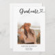 Celebrate a milestone worth remembering with this personalized graduation announcement card, designed to feel both timeless and heartfelt. The front showcases the elegant word Graduate in a flowing fancy script, finished with a delicate heart swash that adds warmth and charm. Centered beneath, your graduate’s photo is beautifully framed in a soft arch silhouette, creating a refined focal point that feels modern yet classic. Complete the look with custom details including the graduate’s name, class year, and school, thoughtfully arranged for a clean, balanced presentation.