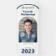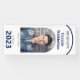 Ein Foto-Abschluss-Banner mit einem Foto, dem Namen, der Schule und dem Klassenjahr. Das Banner hat eine weiße, blaue und graue Farbe. Fügen Sie einfach Ihr Foto und Informationen hinzu, fügen Sie dieses Banner in Ihren Warenkorb und feiern Sie diese große Leistung. Arch White Blue Foto Abschluss Banner Holidayday Design | ©Melissa Patton - Designer