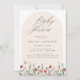 Eine hübsche Babydusche mit einem erröteten Bogen, wilden Blume in Aquarell und grauer Kalligraphie.