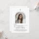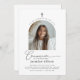 Eine moderne, minimale Erstkommunion Einladung mit einem gewölbten Foto und dem Wort 'Kommunion' in einem kalligraphischen Schriftart. Bitte beachten Sie, dass Sie das Wort 'Kommunion' nicht ändern können, aber Sie können den ganzen anderen Text in diesem Design bearbeiten. Sie können die Farbe ändern oder sie löschen und durch ein neues Textfeld ersetzen.