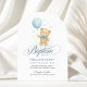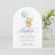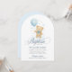 Feiern Sie die Taufe Ihres Sohnes mit dieser eleganten, gewölbten Einladung mit einem Aquarellbären, der einen Kreuzballon hält. Die weiche blaue Palette und die klassische "Taufe unseres Sohnes"-Schrift schaffen ein zeitloses und herzliches Design. Vollständig editierbar und ideal für Taufen von kleinen Jungen oder Namensfeiern.