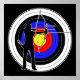 Archery target and player アーチェリーの標的と男性競技者