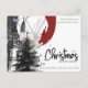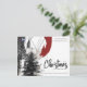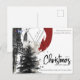 This modern postcard blends architectural sketch lines with a watercolor evergreen and bold abstract red detail, creating a unique fusion of art and structure.