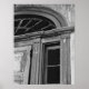 Haupteingang zum verlassenen Haus in New Orleans, Orleans Parish, Louisiana. Vintages Foto in Schwarzweiß. Schönes architektonisches Detail von Tür und Seitenlicht.
