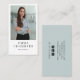 Diese Visitenkarte bietet eine moderne, minimale berufliche Foto-Visitenkarte, die sich auf der Rückseite mit den Kontaktdaten und den Social Media Handles eignet. Sie können die Textgröße, den Schriftart, an Ihren eigenen Stil anpassen. Ersetzen Sie dieses Foto mit der eigenen Visitenkarte zur Porträtausrichtung. Ein staubblauer Hintergrund auf der Vorder- und Rückseite der Karte.