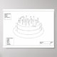 Architektonisches zeichn einer Geburtstagstorte im Stil von Gebäude-Plänen oder blauen Drucken. Dieser zeichn wurde in AutoCAD erstellt. Gut zum Geburtstag eines Architekten oder Ingenieurs.