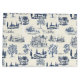 Navy und Crème Toile Muster von meinem eigenen Design. Die Einzelbilder sind historische amerikanische Zuhause, die im 18. Jahrhundert gezeichnet wurden, mit freundlicher Genehmigung der Kollektion Public Domain der New York Public Library.