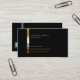 Die Visitenkarte dieses dunklen Designs ist einfach und besteht aus einem goldenen Streifen, der von der oberen links Kartenseite über einen schwarzen Hintergrund herunterläuft. Ihr Name, Ihr Kontakt, Ihre E-Mail und Ihr URL erscheinen auf der rechten Seite des Goldrands, während Ihr Logo und Ihre Geschäftskontakte auf der Rückseite der Karte erscheinen. Eine starke, klare, moderne, schwache Schriftart steht im Kontrast zum dunklen Hintergrund. Entwickelt für berufliche Fachkenntnisse, Fachkenntnisse, Bauwesen, Gebäude, Zuhause-Verbesserung, Zuhause-Reparaturen, Reparaturservice, Dunkel, Schwarz, stark, beruflich, modern, elegant, elegant. Die generische Beschaffenheit dieses Designs macht es als Visitenkarte für jede Art von Unternehmen oder Beruf geeignet.