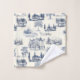 Navy und Crème Toile Muster von meinem eigenen Design. Die Einzelbilder sind historische amerikanische Zuhause, die im 18. Jahrhundert gezeichnet wurden, mit freundlicher Genehmigung der Kollektion Public Domain der New York Public Library.