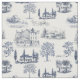 Navy und Crème Toile Muster von meinem eigenen Design. Die Einzelbilder sind historische amerikanische Zuhause, die im 18. Jahrhundert gezeichnet wurden, mit freundlicher Genehmigung der Kollektion Public Domain der New York Public Library.