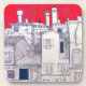 europäische Häuser und Dächer auf einem Set Untersetzer
