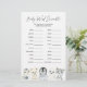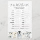 Arktische Tiere themed Baby Dusche Wort Rührei Spielkarte bietet eine Aquarell Winter Tiere Illustration und Aquarell Grüne eucalyptus Garland und elegante handgeschriebene Stil Schriftart.