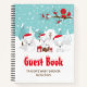 Dieses niedliche und unterhaltsame Gästebuch mit Baby-Dusche empfängt Sie mit einer bezaubernden Arktis-Fuchsfamilie in einer winterlichen Umgebung mit schneebedeckten Bäumen und einem roten Vogel auf einem Zweig mit Heiliger. Die Füchse in Weihnachtsmannmützen fügen eine festliche Touch hinzu. Im Hintergrund ist ein aquamariner, blauer grüner Himmel und fallende Schneeflocken. Der Text verbindet dekorative und serifenlose Schriftart für einen stilvollen und modernen Look. Das ist perfekt für eine Babydusche zu Weihnachten.