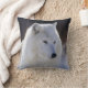 Foto des arktischen Wolfs zugeschnitten auf Kopf und Brust auf Kissen gedruckt.