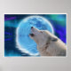 Arctic Wolf Howling at Aurora & Moon Wildlife Poster