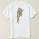 Die Front dieses T - Shirt trägt eine kleine Argentinien-Flagge mit seiner vertrauten gelben Sonne über den blauen und weißen Bändern, während die Rückseite eine Entlastungskarte von Argentinien anzeigt. Verfügbar auf T - Shirts, Sweatshirts, Polo, Langhülsen und mehr.